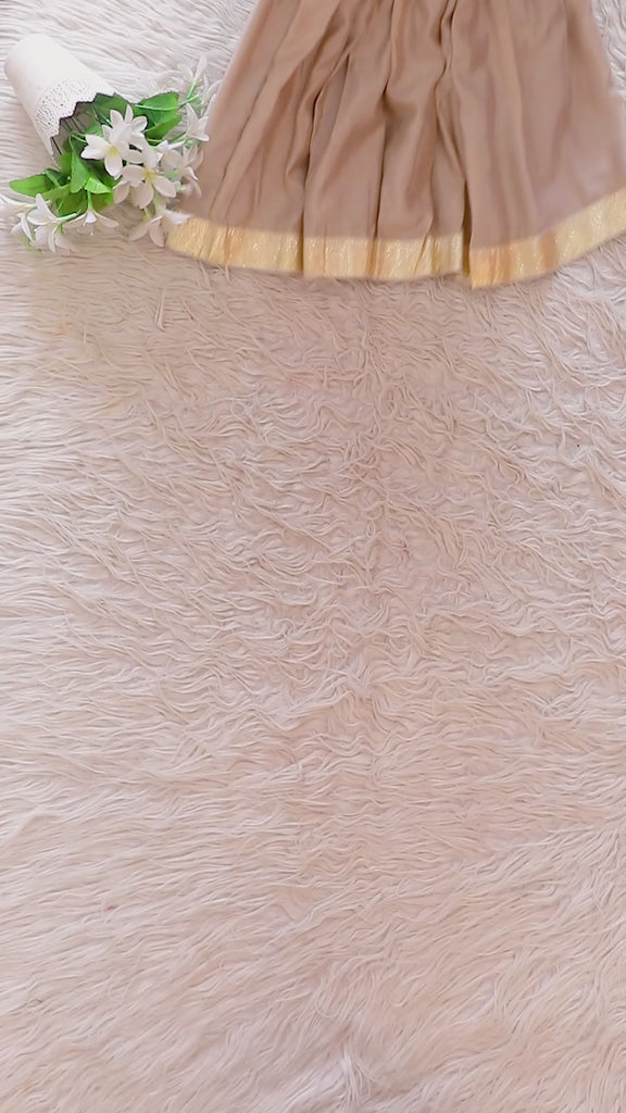 - Dupatta: Matching beige dupatta with coordinated golden border